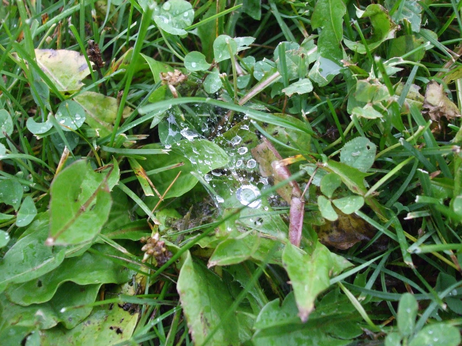 Anyway, as I was out chatting with Don I happened to notice a spider web with raindrops on it .... one of the drops looked like it was about ready to fall through the web. I asked Josh to run in to the house and grab me my camera (I didn't want to lose the spot where this was). I managed to get some shots of it before Jake (our dog) came over to sniff what I was taking pictures of, *sigh* I'm glad I found it before he sniffed it, lol. I couldn't decide which ones to actually post - I thought they all looked really neat .... soooooo, I posted all of them, lol.